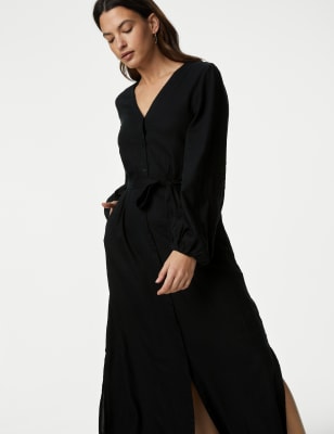 Homely Womens Black Dresses Womens Button Down Knee Length Midi Dress V Neck Split Casual Long Sleeve Dress Walmart Ca
